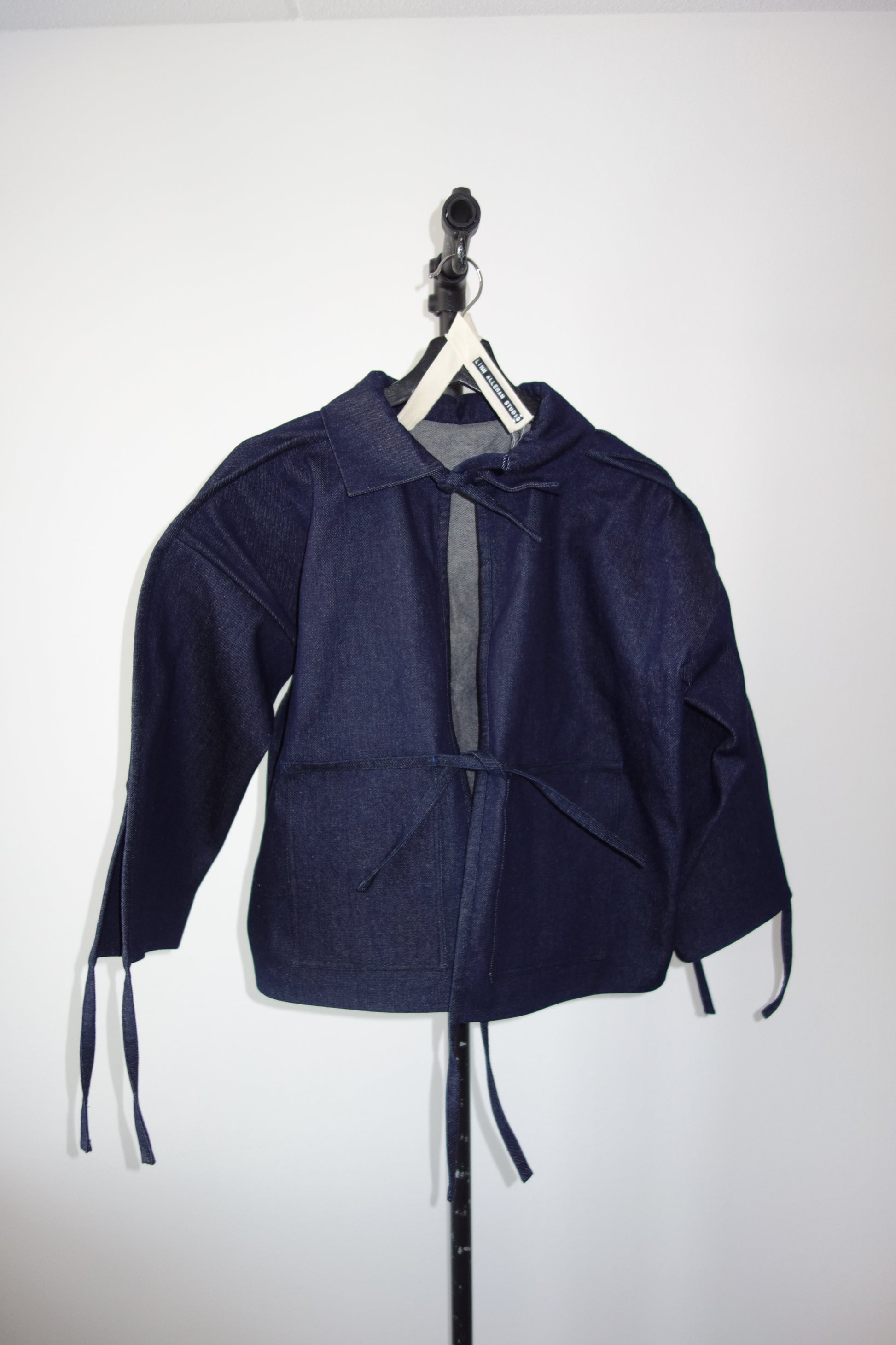 The Al Jacket in unwashed denim. Might bleed on light surfaces. Hand stitching details. Boxy fit.